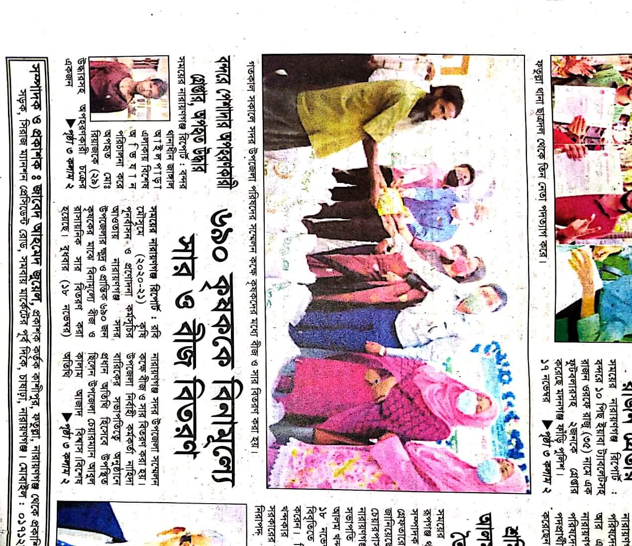| ৫ | নারায়ণগঞ্জে ৪০০ জন কৃষক পেয়েছেন শাক সবজির বীজ | | দেখুন | |